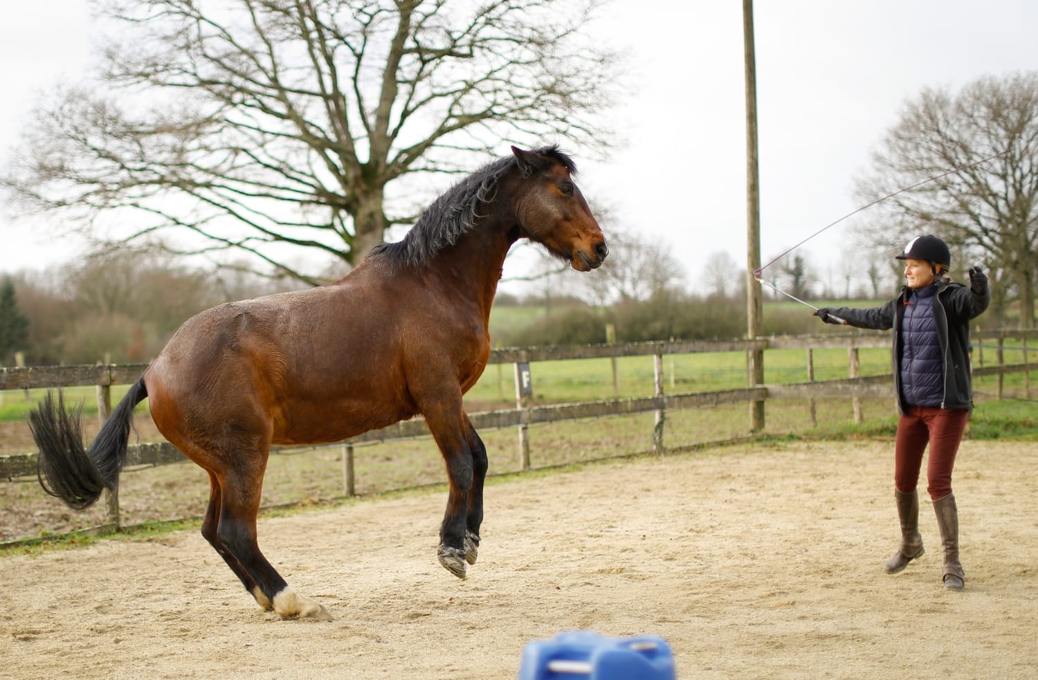 Pratique à pied : en longe, à grande distance, en longues rênes et en liberté.